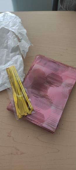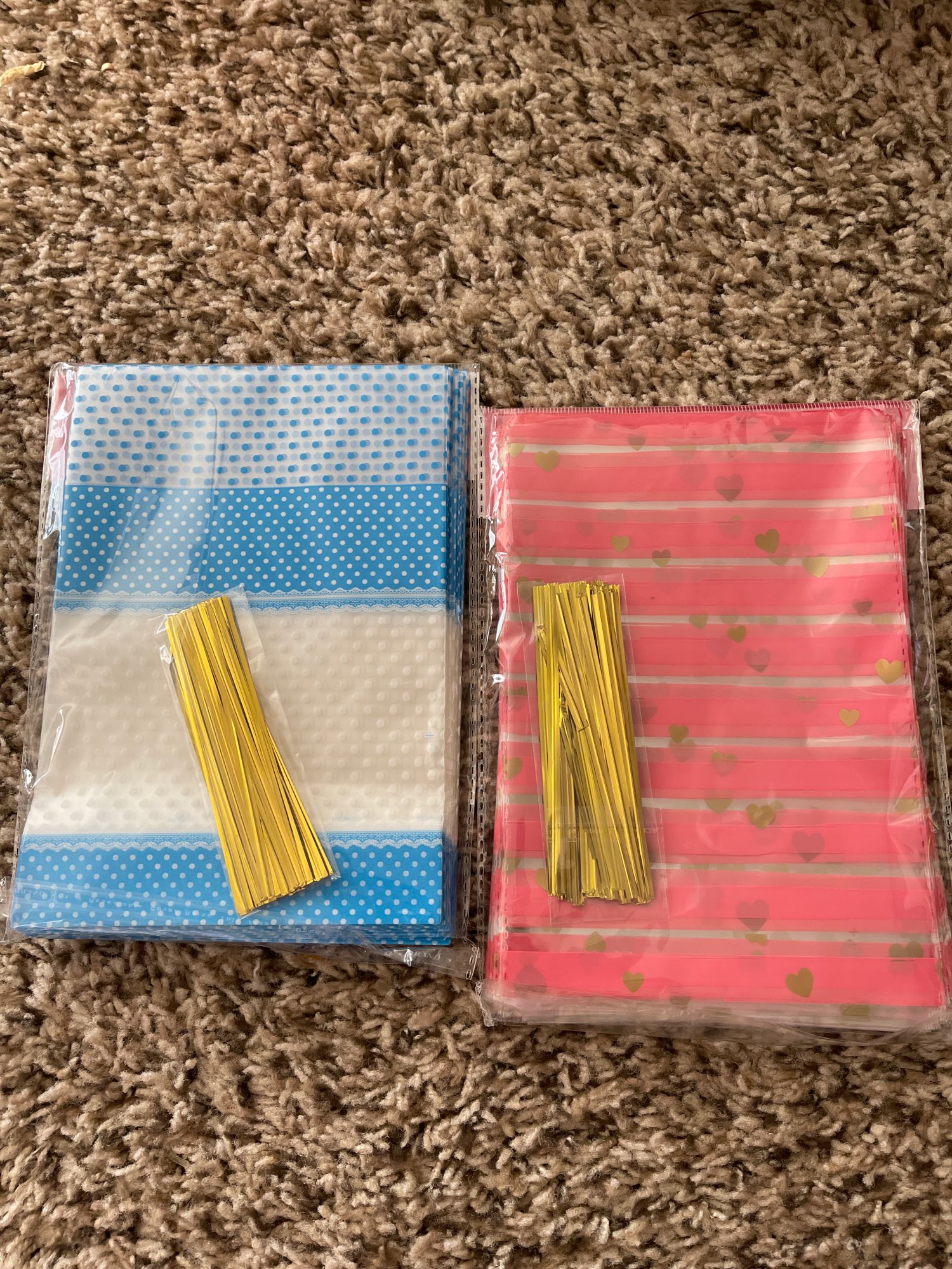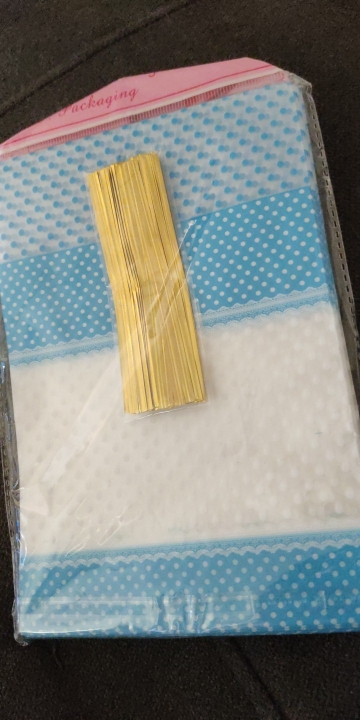 The plastic bags are the same as in the item description. They also came with wire ties and you can use it to put candies inside or anything you want. I’ve ordered a smaller size and I’m very happy with my purchase.