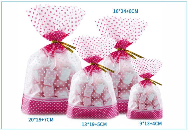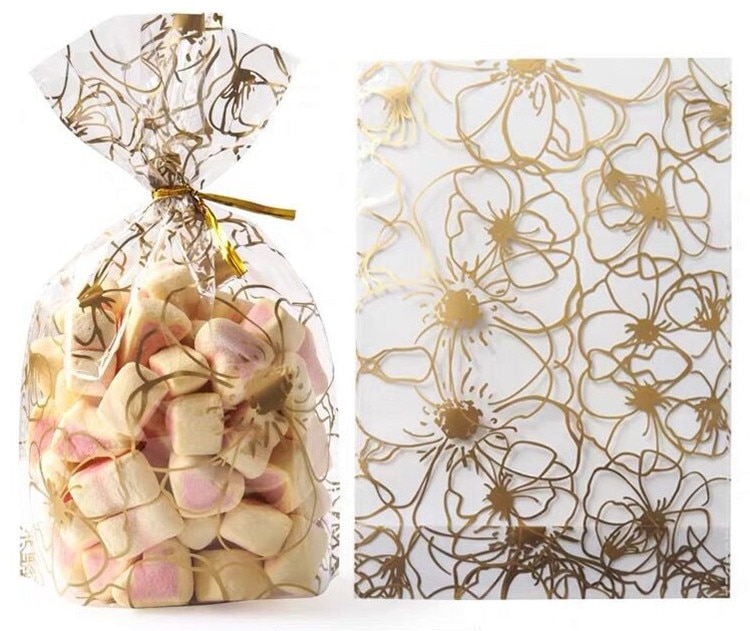 très belles pochettes. son motif doré lui apporte un bel effet pour les fêtes. j’aime énormément. la taille est parfaite pour les bonbons et ou des petits gâteaux ou encore un ensemble de noix. petites contenances.