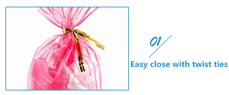 Bag Style: Creative Open Top Plastic Gift Bags (with 50pcs gold/Silver wire ties together)