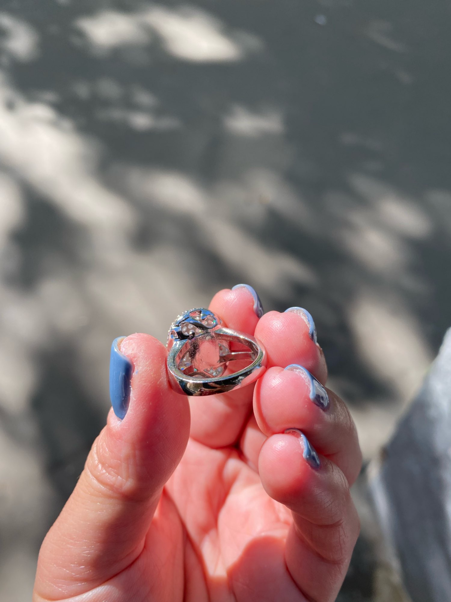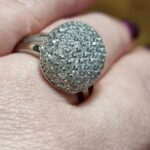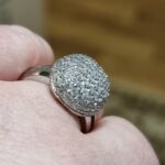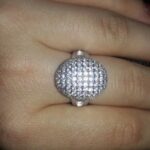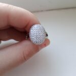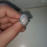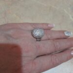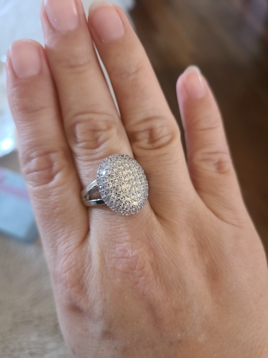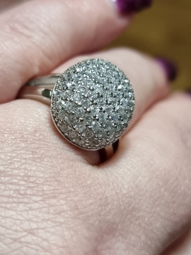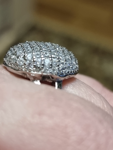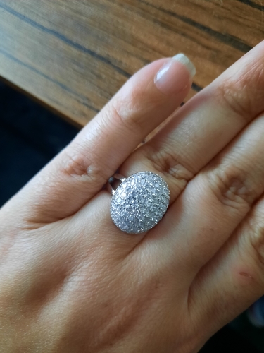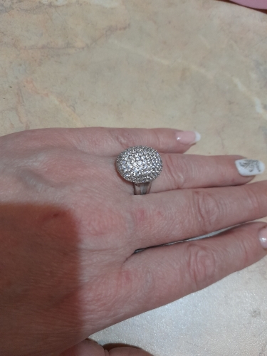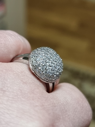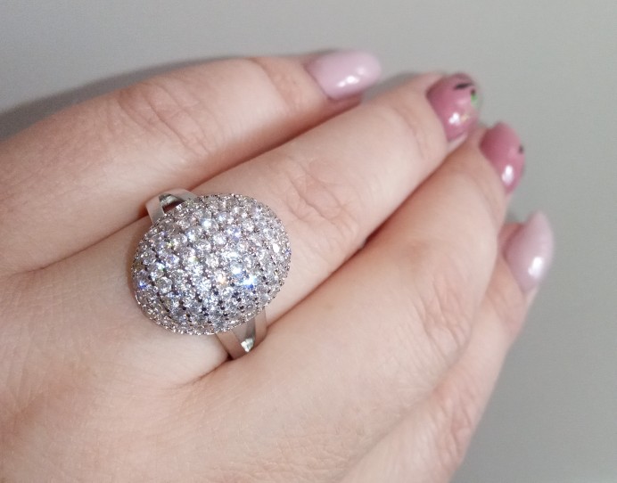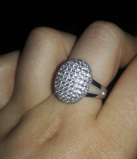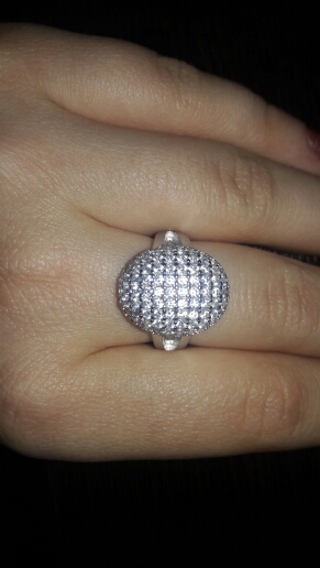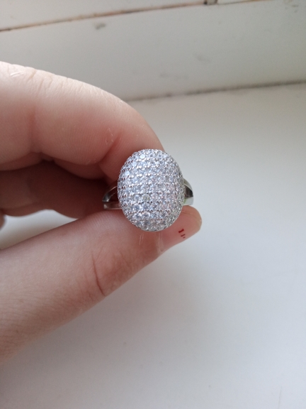 доставка месяц. шикарное кольцо. выполнено качественно, гладенькое.все камешки в лапках, как в ювелирке. не магнитется, есть какая-то пробова. вряд ли серебро, за эти деньги