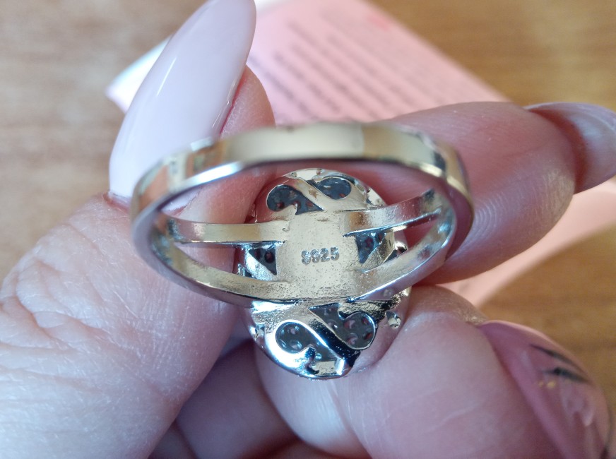 кольцо красивое очень,смотрится дорого.но это явно не серебро,и по ощущениям даже не металл.проба стоит но непонятно что на ней написано.в остальном все прекрасно