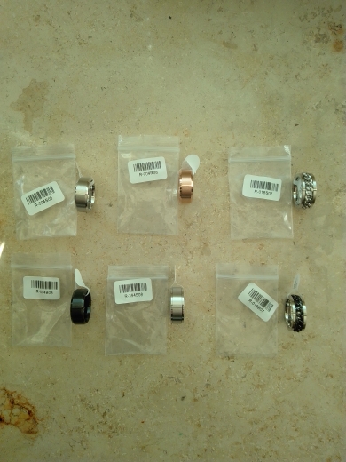 Good quality and came with a little bag but as shown sizes aren’t accurate (if you look at the picture the size 12 rings compared to each other actually are different sizes even though both say size 12 so only one of them fit)