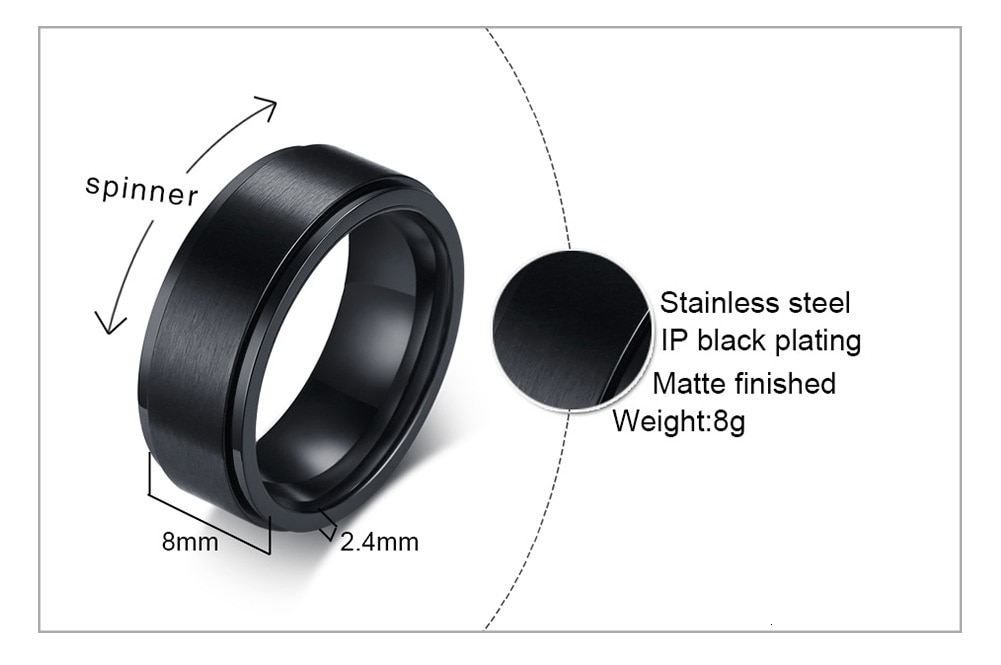 39 reviews for Black Stainless Steel Rotatable Rings for Men