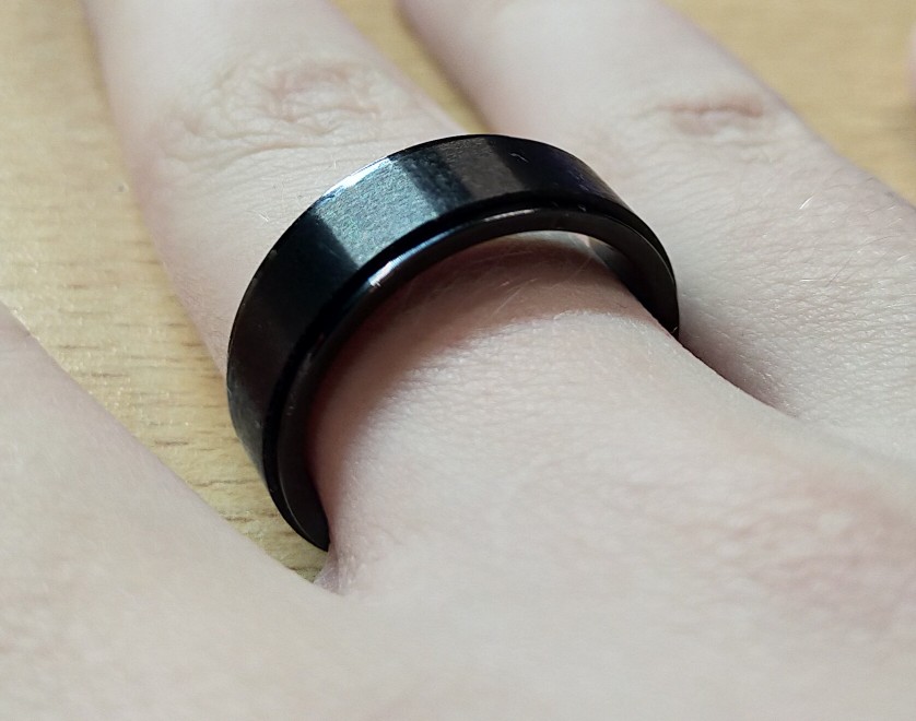 Кольцо казалось великовато, подшипник пришлось немного разработать. На длину окружности, равную 63,2мм решил взять 11 размер. Зазор 2-4 мм. Как антистресс помогает, но для повседневного ношения не подойдёт.