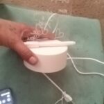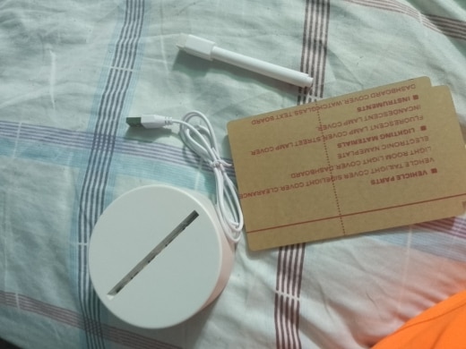 This uses a USB port and it isn’t a very long wire as well. The only way of turning it off is with pulling the plug basically. Still a bright light and marker works really well with it. The acrylic is covered with a film strip during shipping and came in a box.