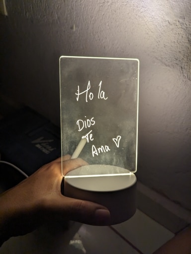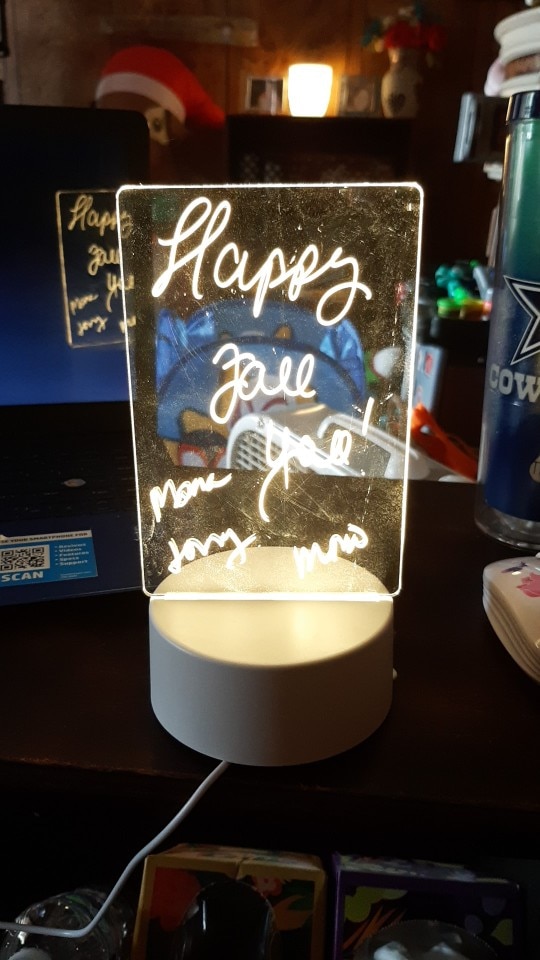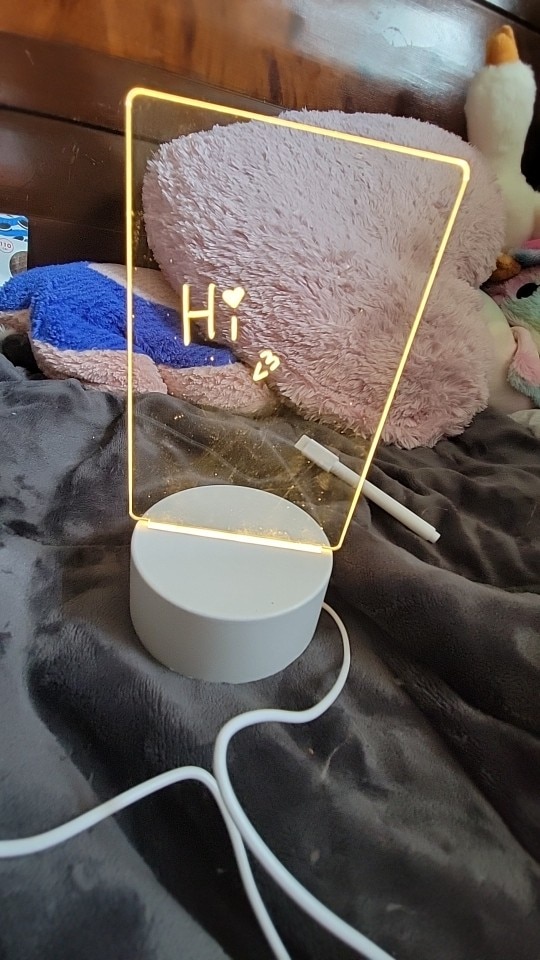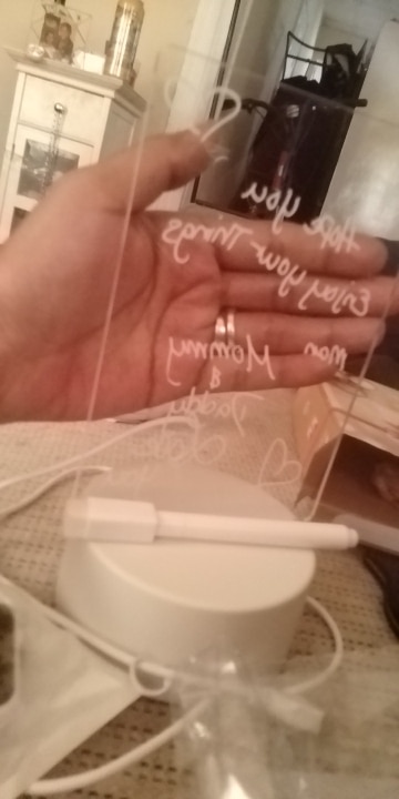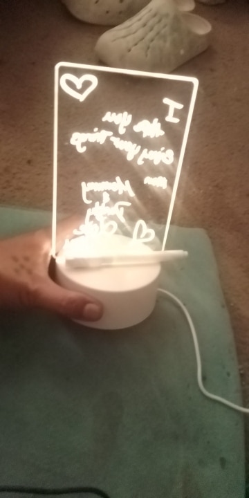 My daughter loves this night light she already using it and writing messages on the broad. Nice for the price .