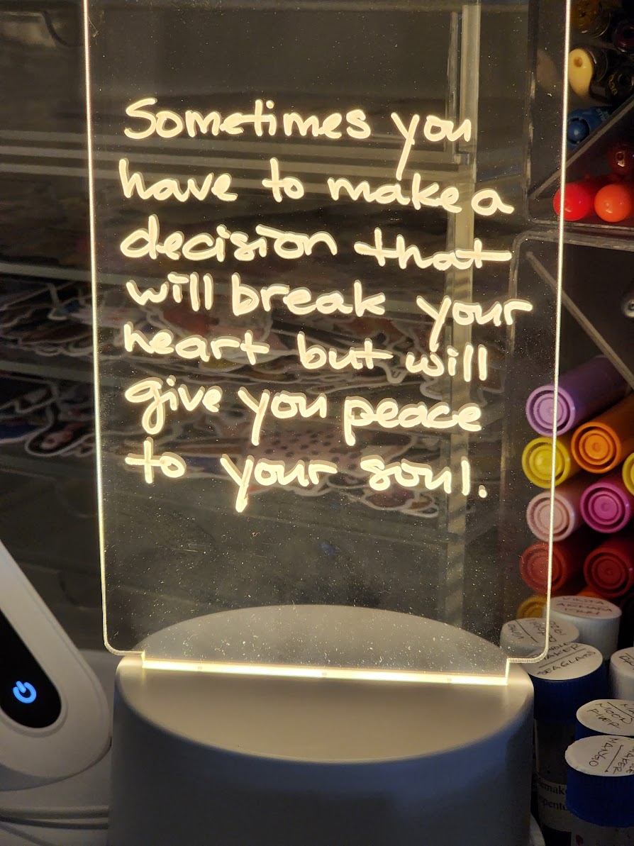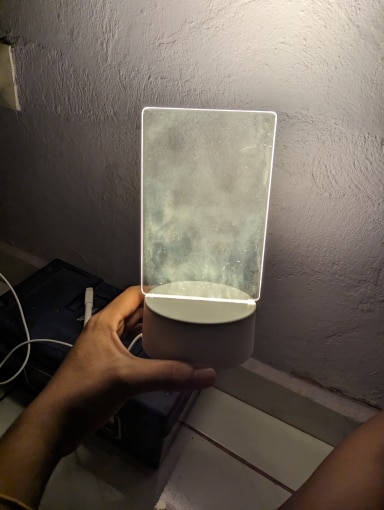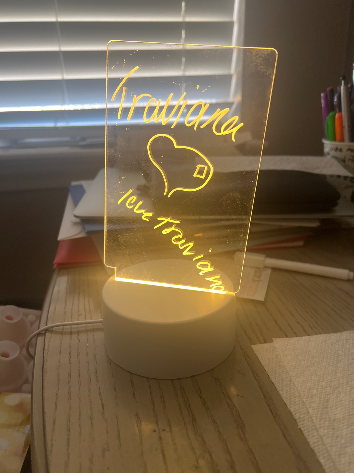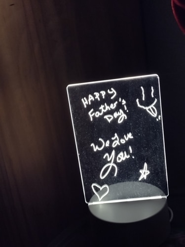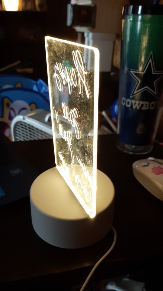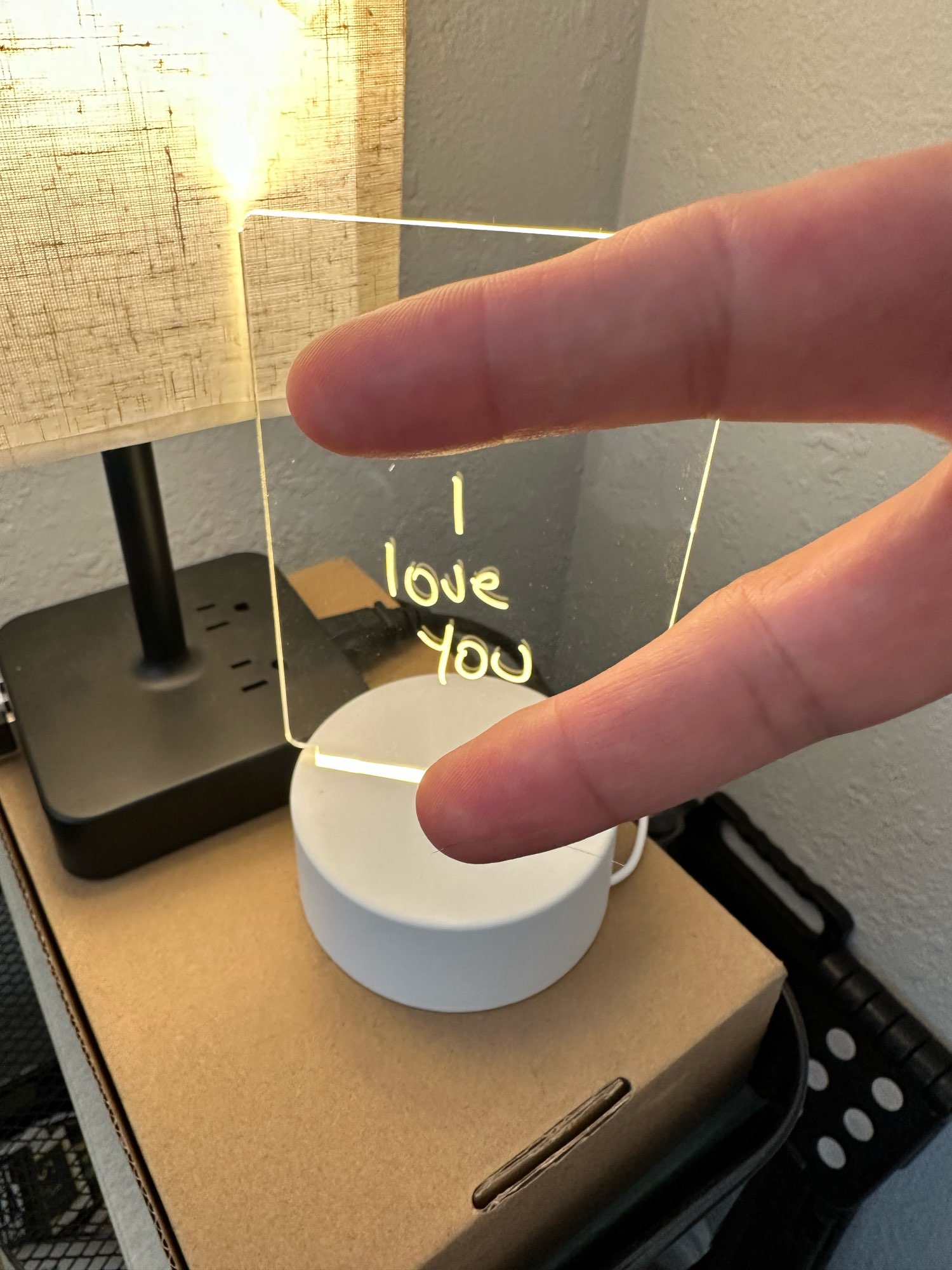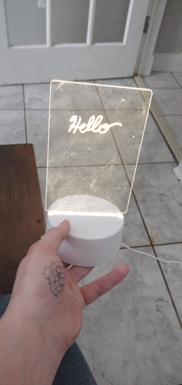 It was smaller than I’d hoped, about 4×6, but it’s still cool. Main tip, DON’T use the eraser on the pen, it’ll scratch the glass. The glass is also extremely hard to fully clean of smudges and fingerprints completely. The light is really bright however and when you have an image or words drawn on the glass, it won’t get in the way too much.