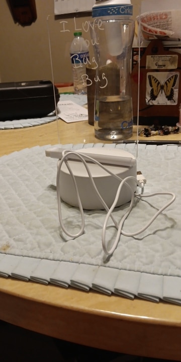 I had bought the calendar as a gift for my house for my mom and I to leave messages back and forth, when I seen this one I had to get it just for me. I’m not that big of an artist, but I’ve been known to doodle every once in a while, like most people. I also thought I could use it to write quotes on that mean something to me at the time. Right now it’s displaying a quote I heard on a podcast, a doodle of the sun and moon and Capt. Jean Luc Picard’s catchphrase hahaha! Thought that was fitting as writing on a clear surface and having it light up seems sci-fi, Star Trek to me. I know how it works but it still seems sci-fi. These seem to attract dust like nobodies business. I’m not lazy, what you see is from two days. Product arrived in great condition and ahead of time.