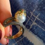 Magnifique bague au design d un compte de fée avec une belle grenouille sur une perle