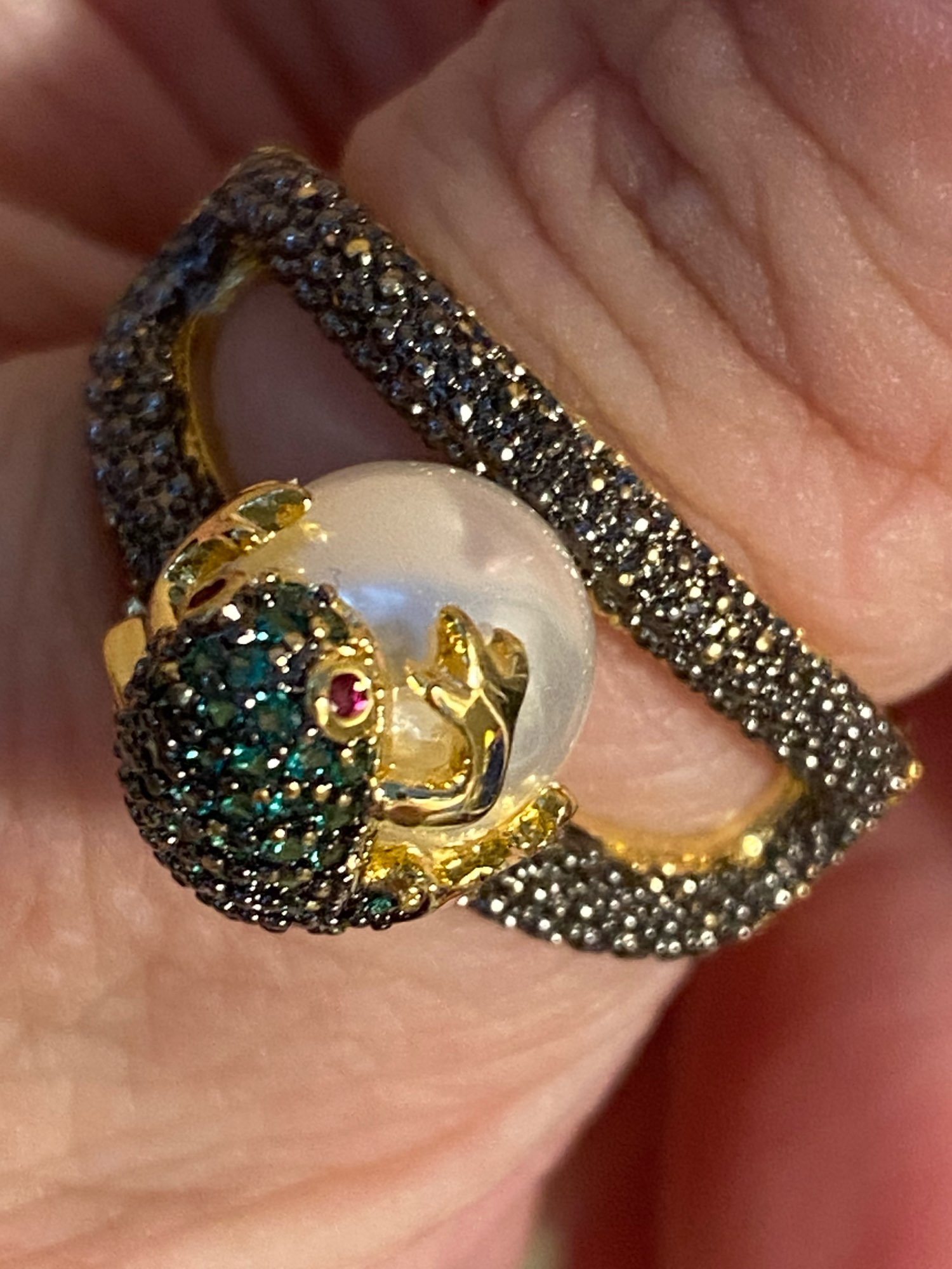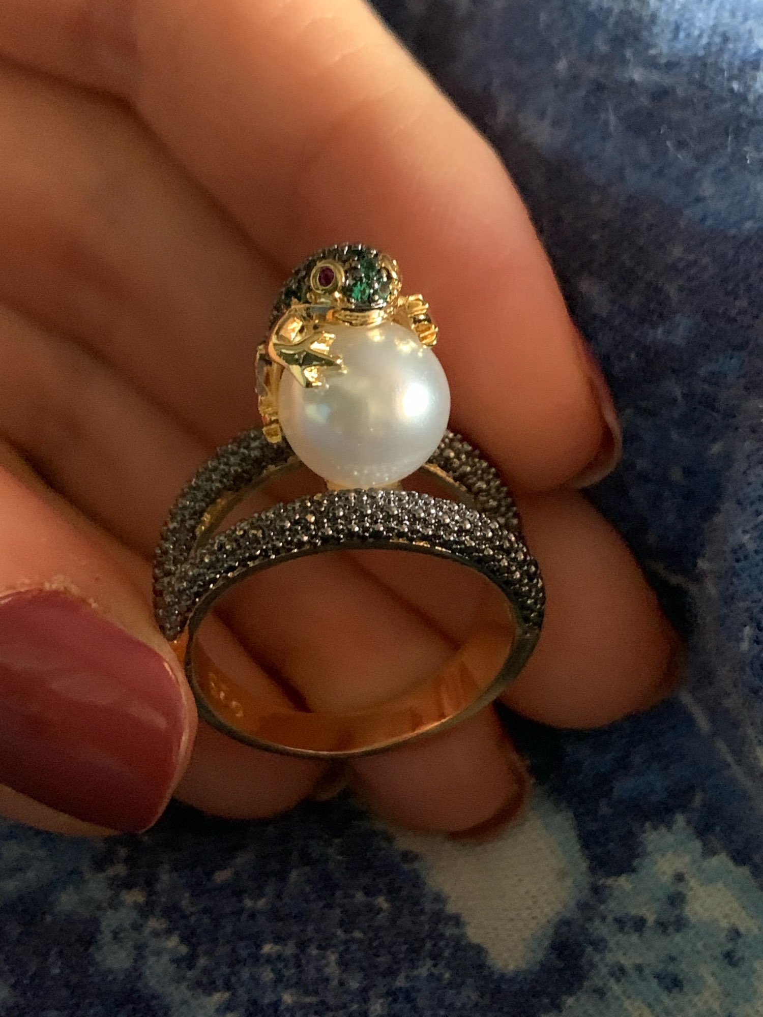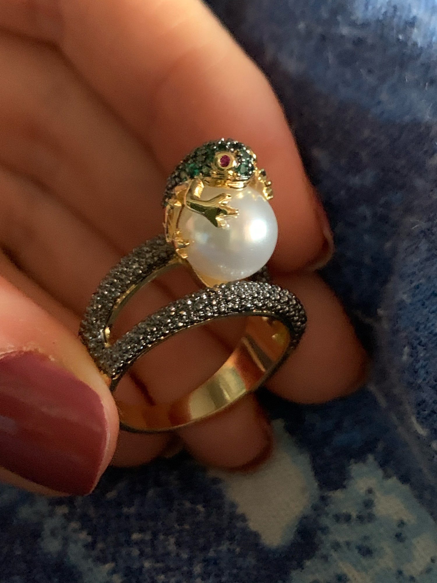 Огонь! Красота! Блестит! Лягушка маленькая, но все детали просматриваются, даже глазки малинового цвета и пальчики на лапках. Кольцо возвышается, но громоздким не смотрится. Рекомендую!