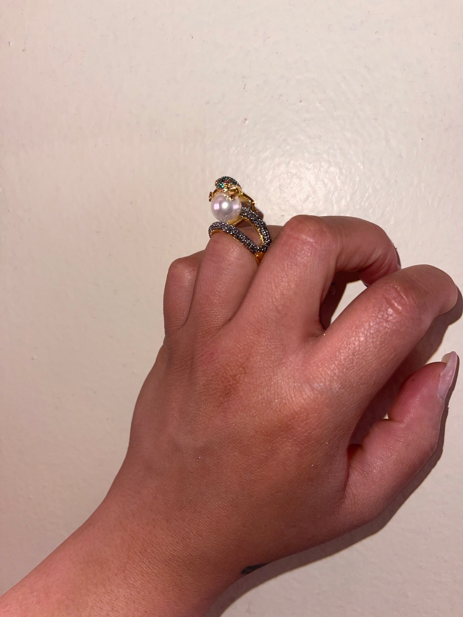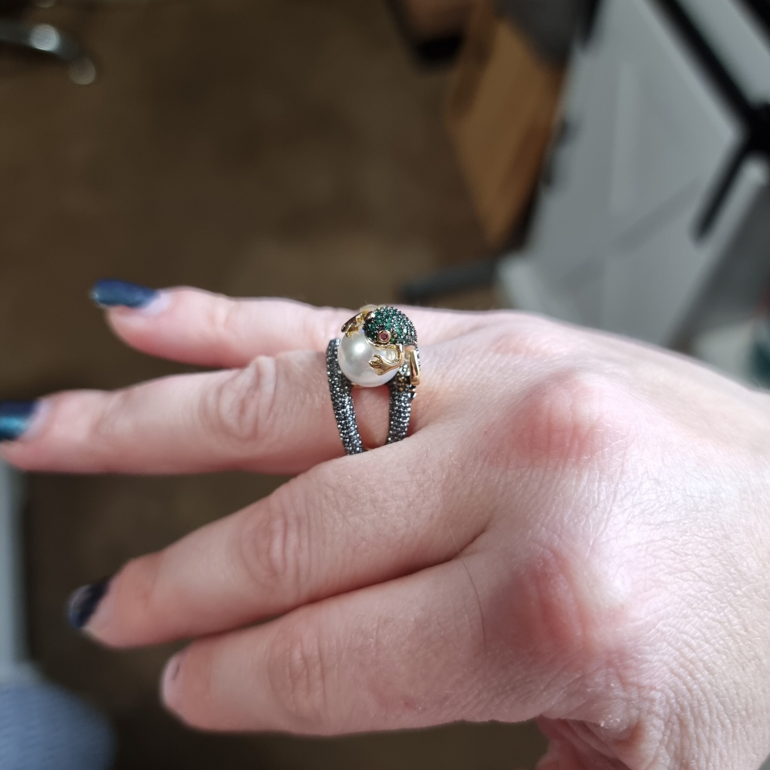 Оно идеальное!!!!!!! Лучше чем в ювелирных магазинах. Такая тонкая и качественная, есть проба 925, каждый камушек идеально сидит, даже глазки другого цвета, просто потрясающее кольцо. Выглядит как ювелирное украшение.