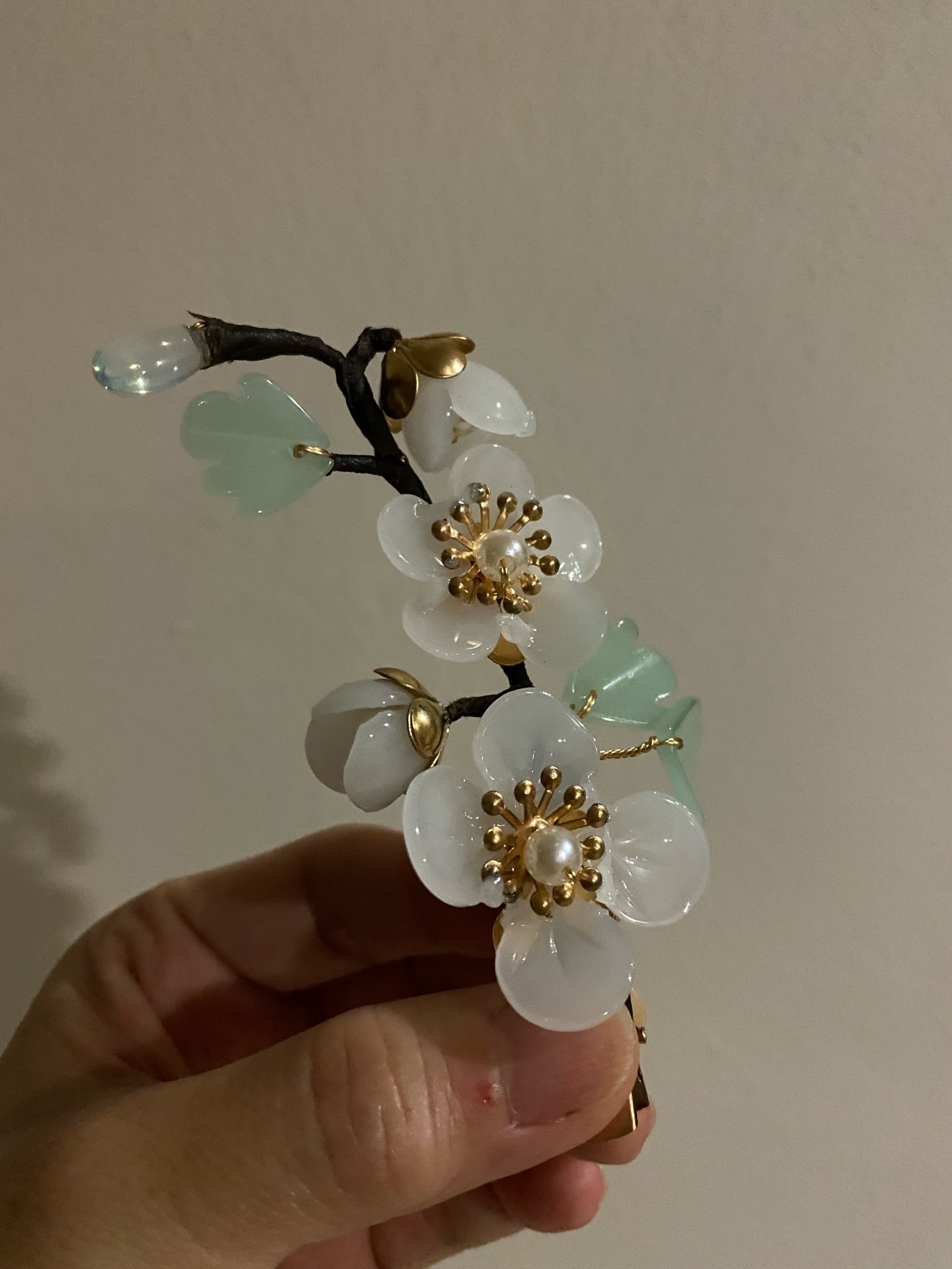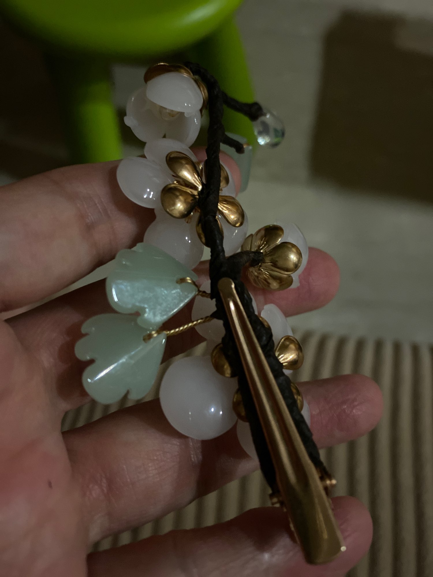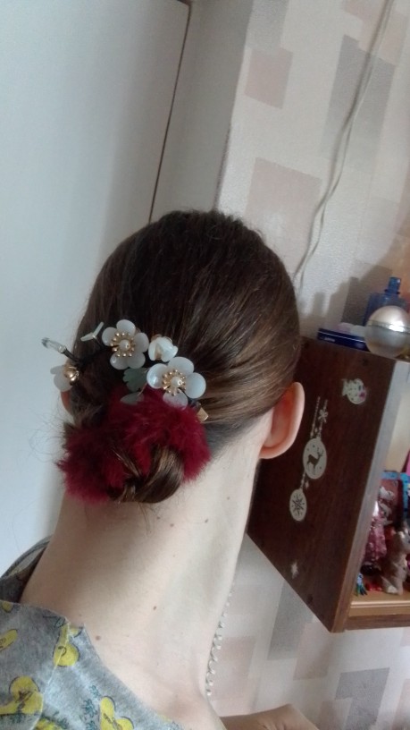 Нежная, красивая заколочка. Жаль только, что нет зубцов на самой заколке. Лучше бы держалась. Носить летом на пучке – самое то. Красота!