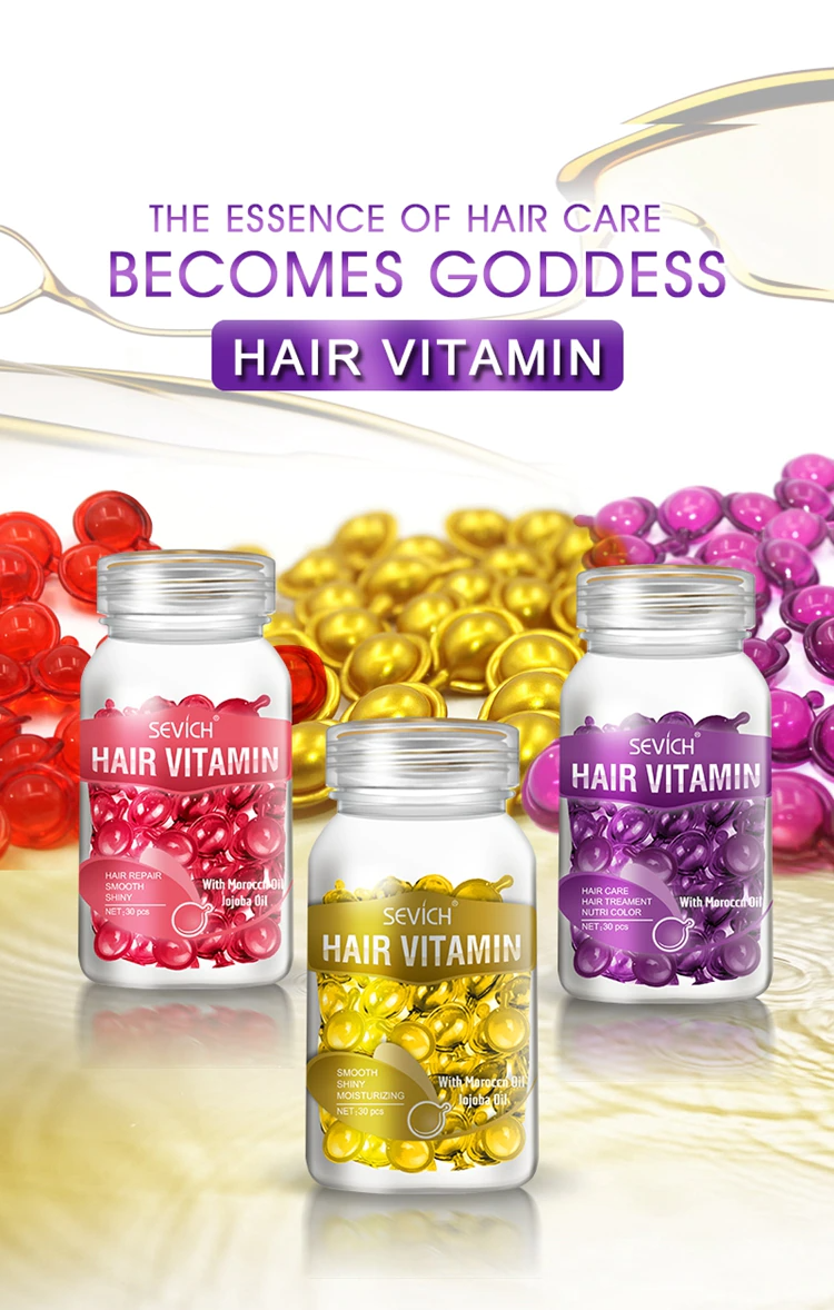 Hair Vitamin Capsule Natural plant extraction, repair damaged hair and smooth. Capsule Design, convenient and hygienic. Precise Quantification, One grain at a time. No Wash, Moisturizing hair not greasy.