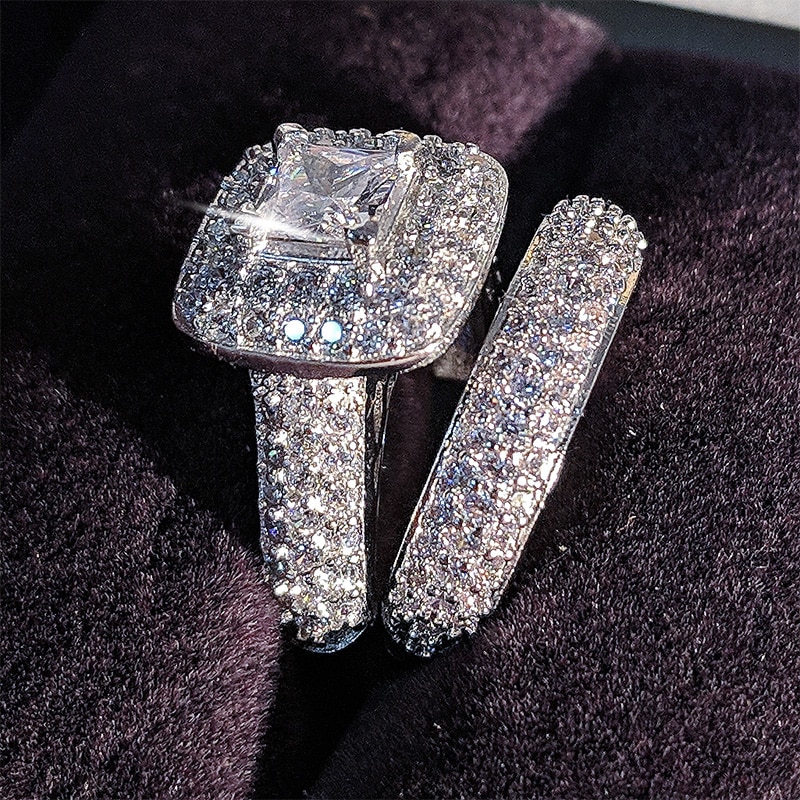 39 reviews for Luxury 925 Sterling Silver Wedding Ring Set R3400