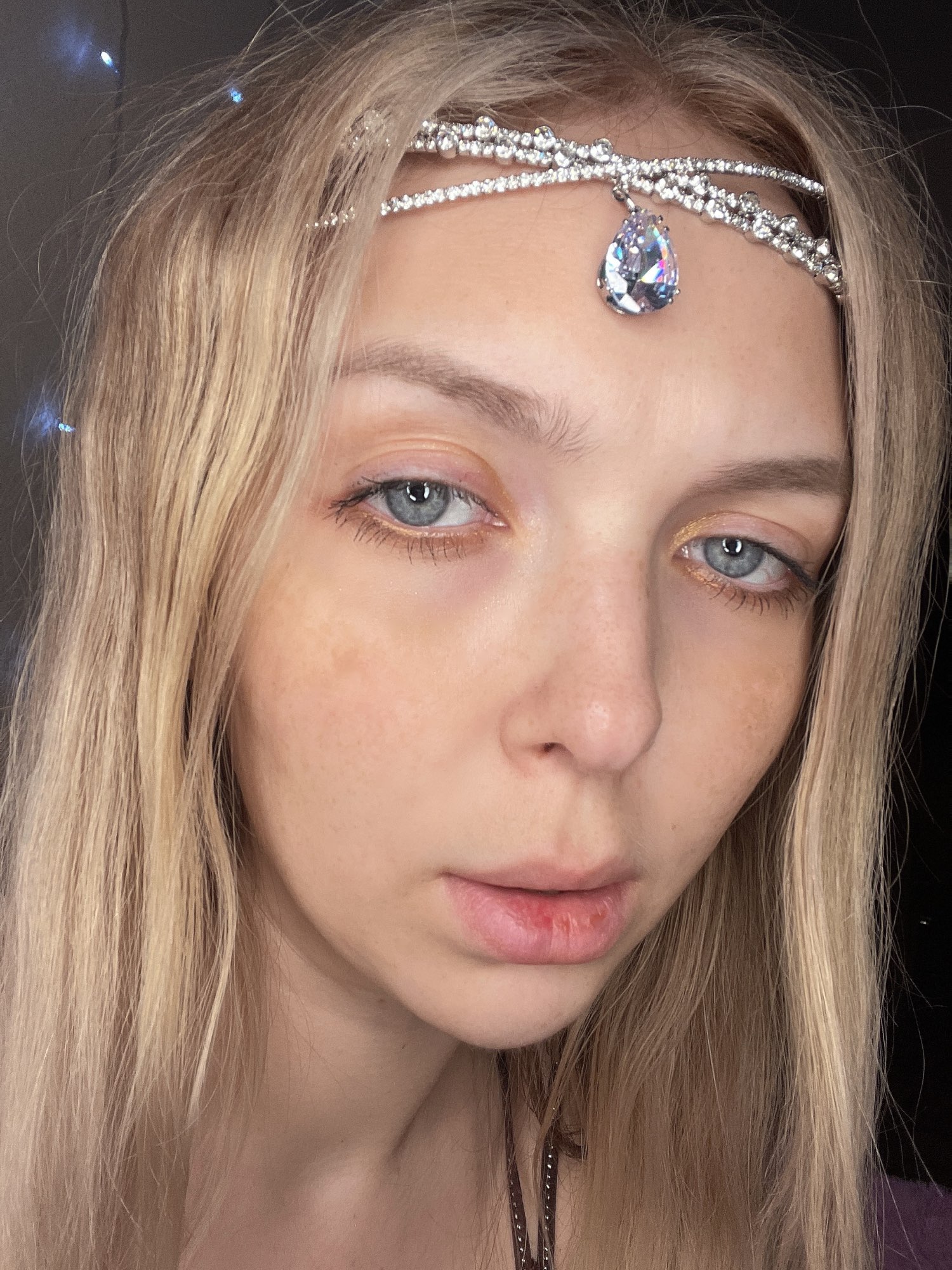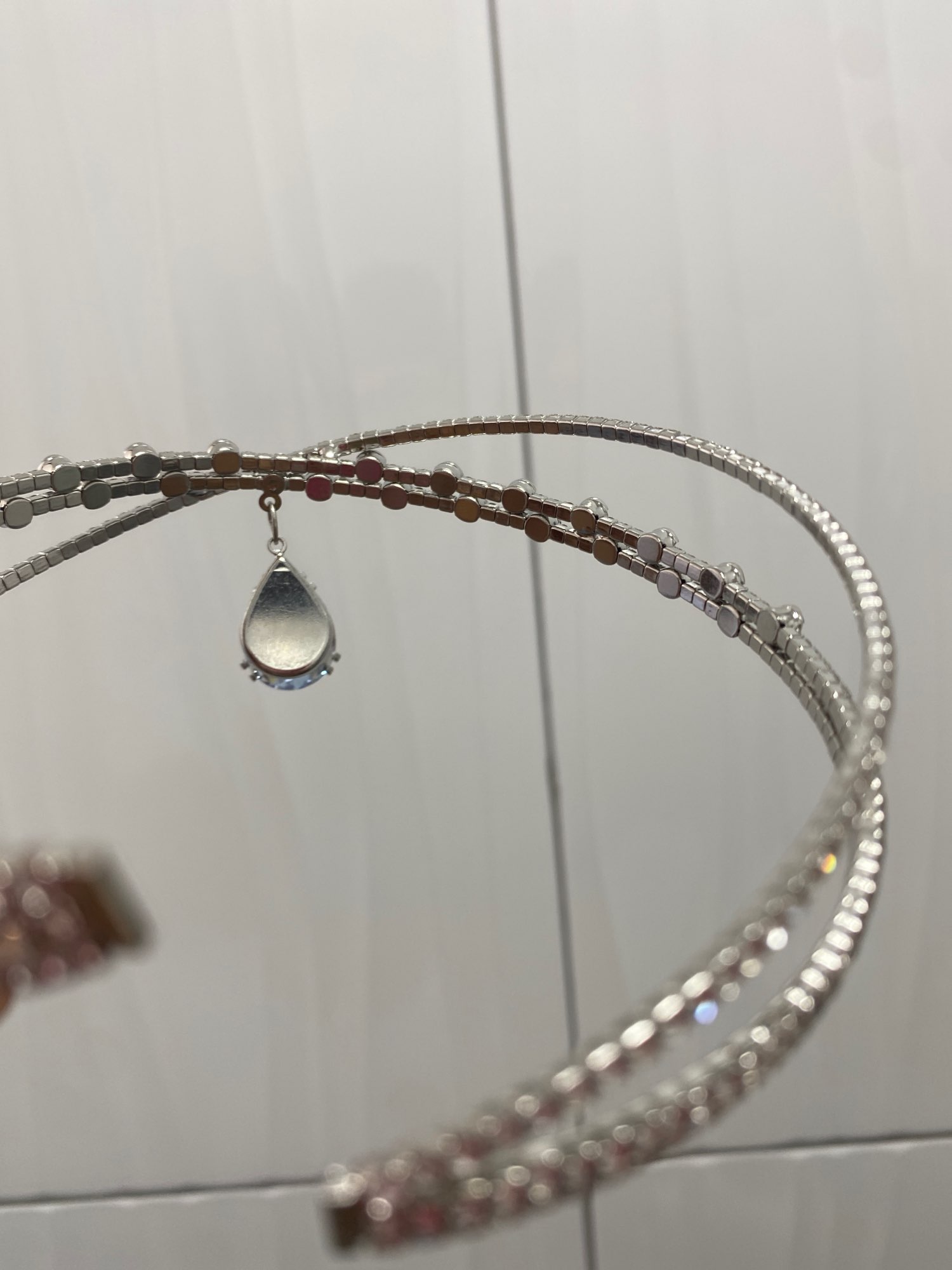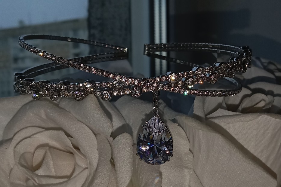 Очень красиво блестит, смотрится изящно, можно надеть и на голову, оно гибкое
