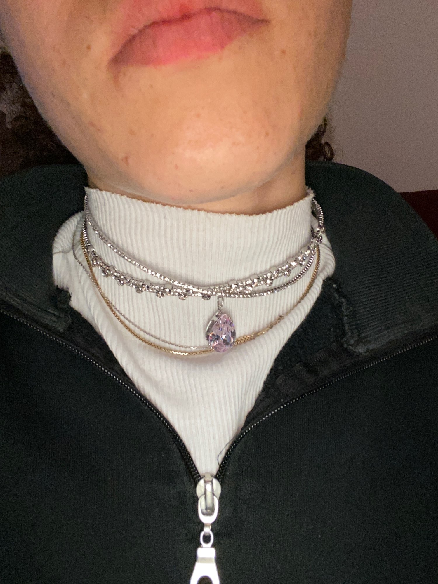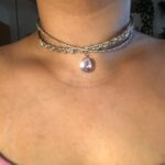 Отличный чокер, тянется. Однако, как и следовало ожидать, он спадает вниз шеи,и вид теряется, худым девушкам подойдёт меньше всего. Но для меня это не беда, я буду носить в прическе))