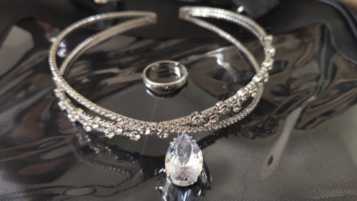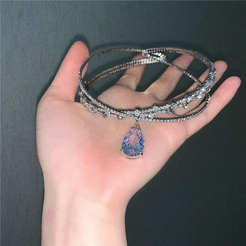 39 reviews for Luxury Crown Crystal Choker Necklace Water Drop Pendant
