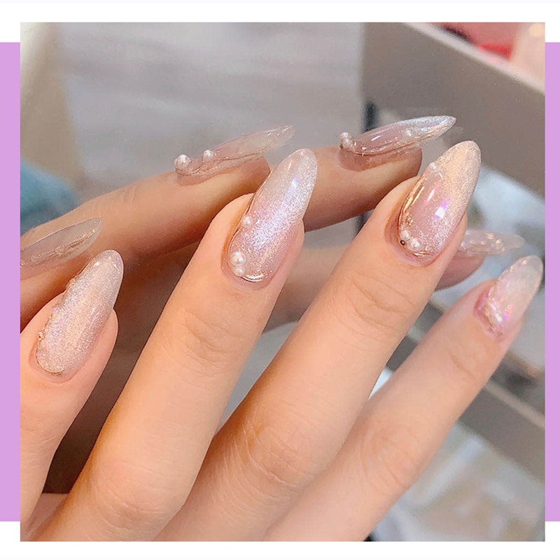 7. Apply Crystal cat eye Gel and use the Magenet get the shape, then Cure it