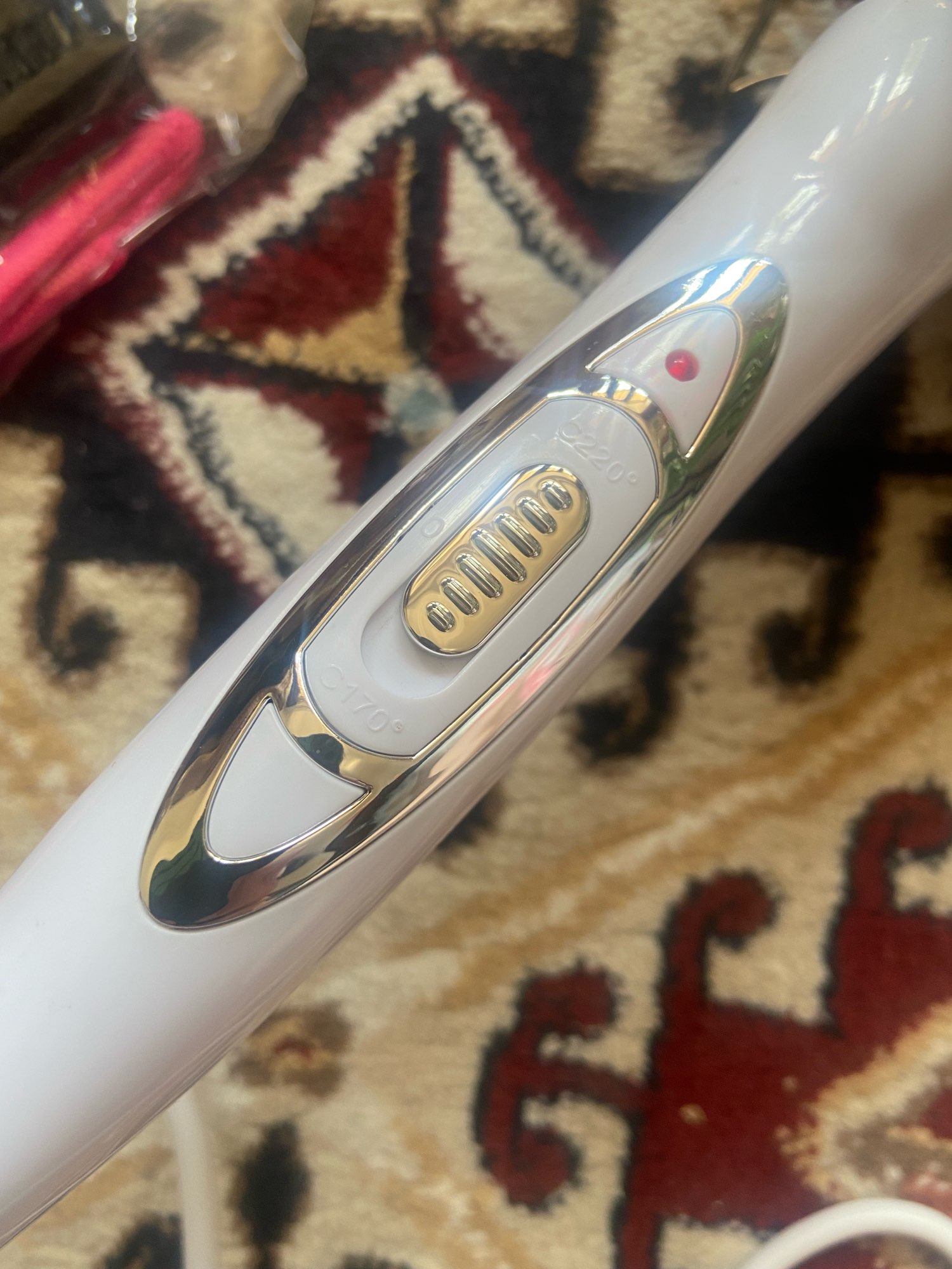 Пришло быстро в Португалию, в мягкой упаковке. Температура имеет всего 2 режима 170 и 220 градусов. Нагревается быстро , реальность температуры сложно узнать , на 170 градусах при завивке был пар от волос , хотя волосы были сухие. Не знаю насколько это щадящее для волос, ну не отвалились .