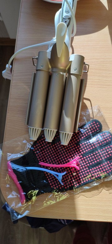 Товар пришел быстро. Ставлю 4 звезды, поскольку есть с чем сравнить. Ранее у меня уже была подобная плойка. Выглядела более профессионально: шнур профессиональный, болты не так выпирают, что-ли. Вместо сплошной пластины с одной стороны, были просто три круглые стержня, которые открывались в разные стороны и создавали волну. Плюс, чтобы была хорошая волна, нужно несколько секунд ждать, даже когда выставлено 220 градусов. У моей старой плойки такого не было, локон завивала за несколько секунд, просто притрагиваясь у плойке и отпуская сразу. Могла несколько дней проходить с волнообразными волосами. Тут такого нет. На следующий день – ты просто становишься пушистый. Из хорошего: недорого и для разнообразия пойдет. С продавцом не общалась.