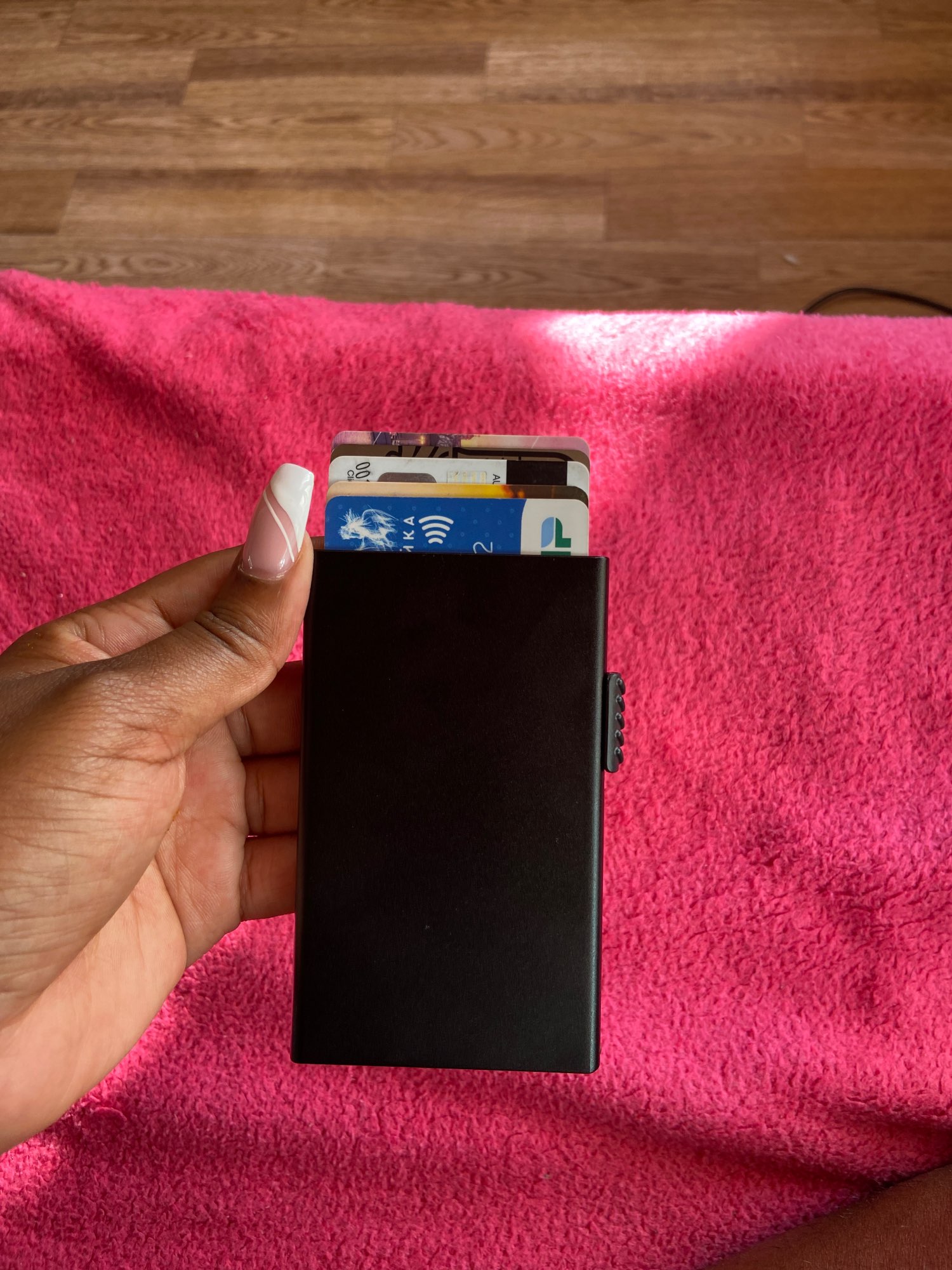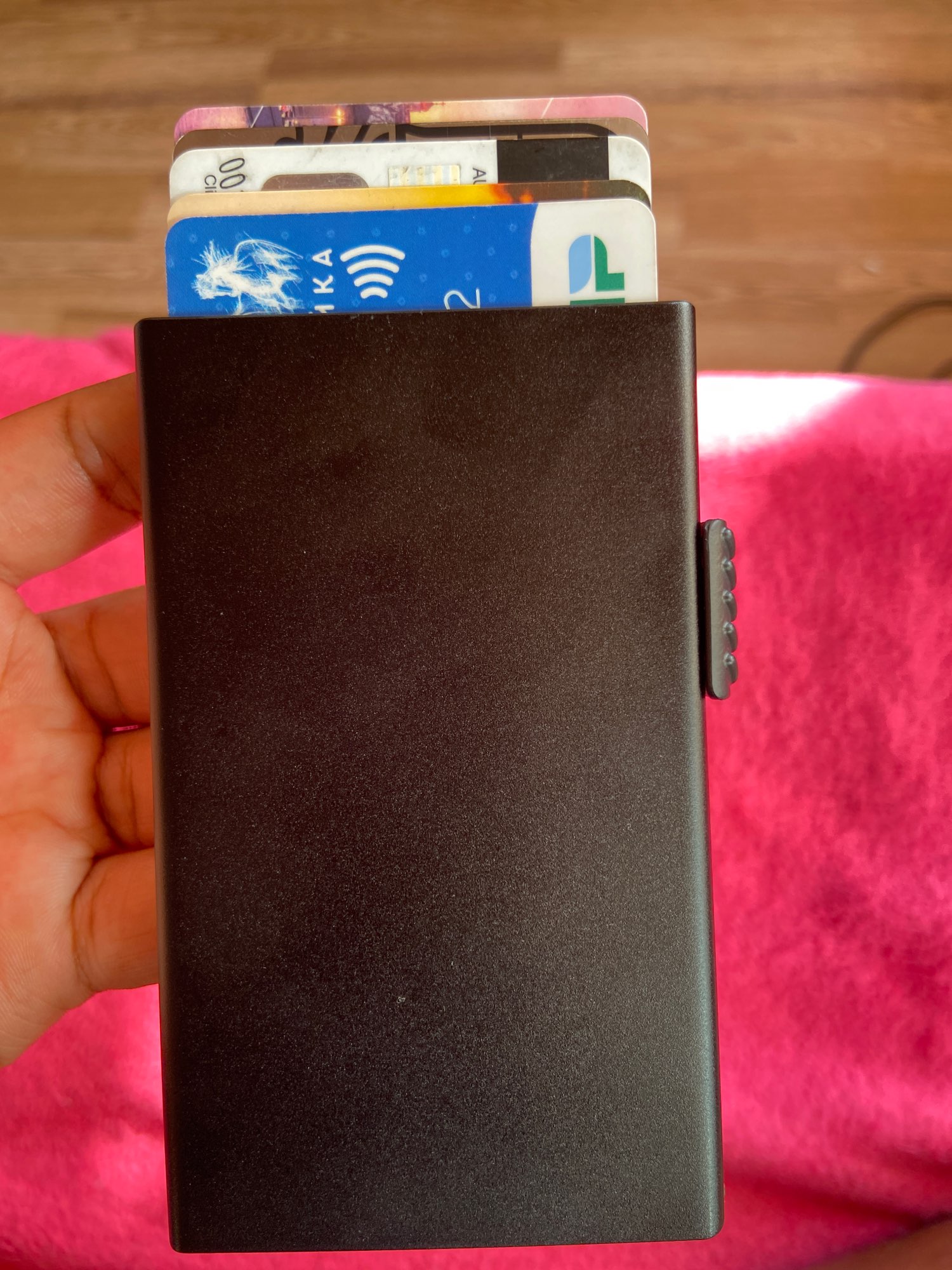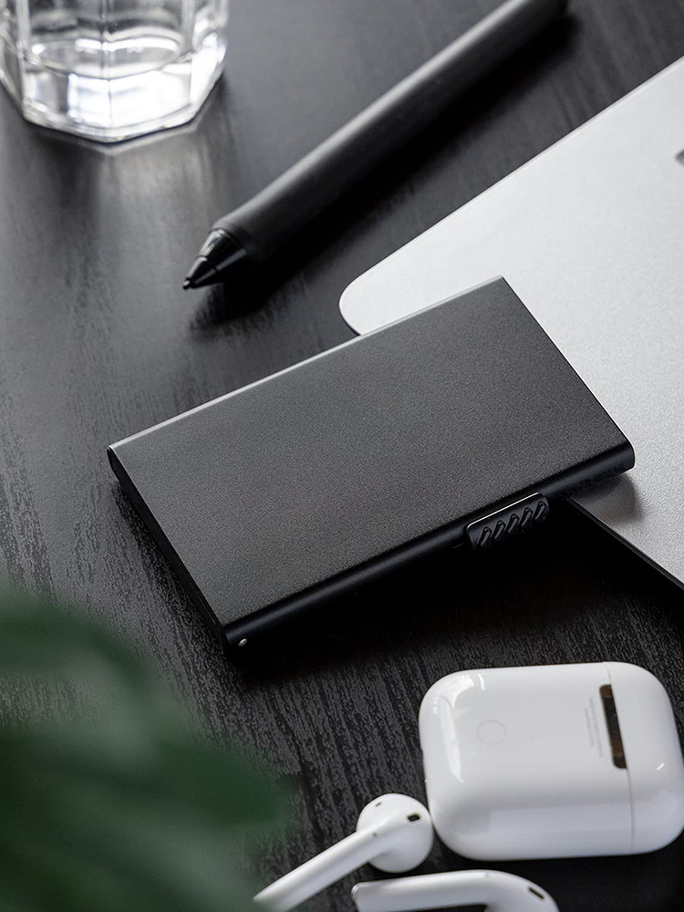 The aluminum case protects your card from unwanted wireless communication, ensuring