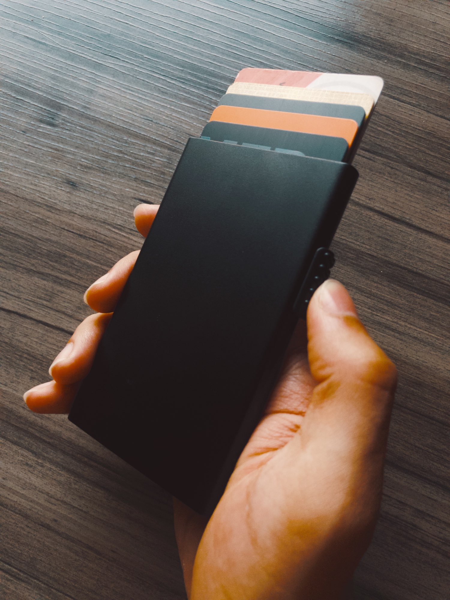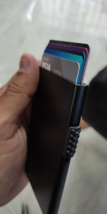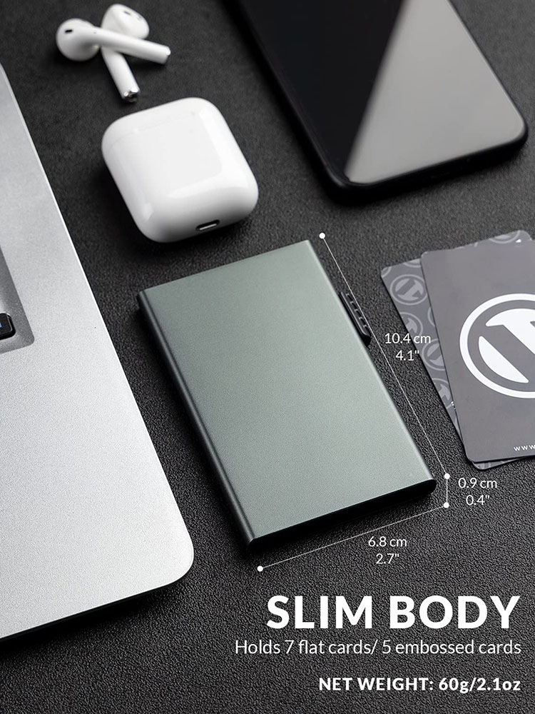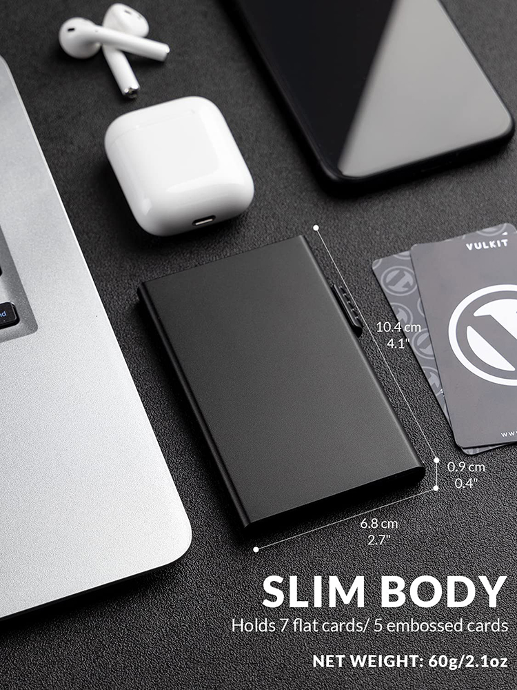 you won’t feel it in your pocket.Slim body but big volume, holding 7 flat cards / 5 embossed cards.