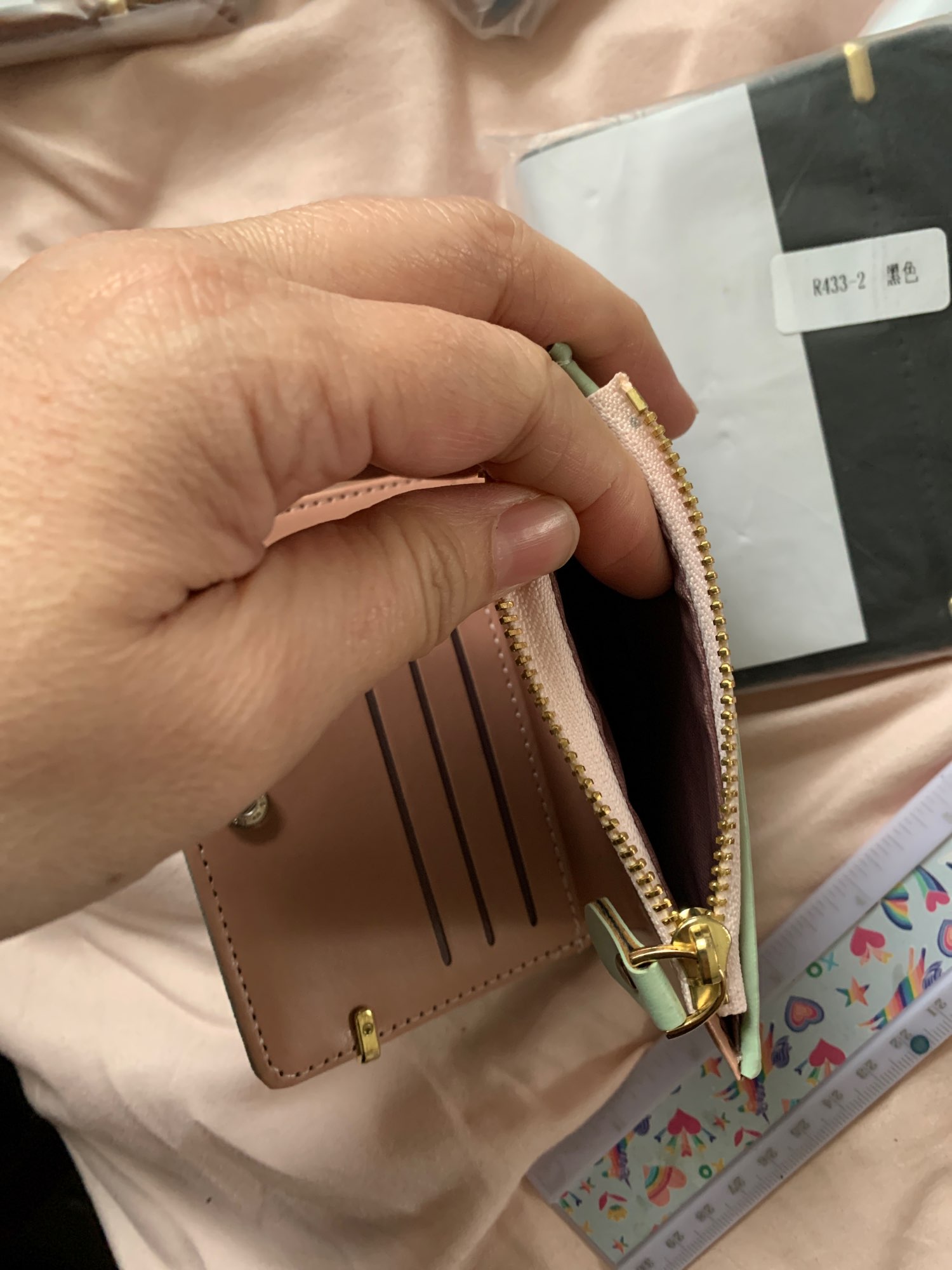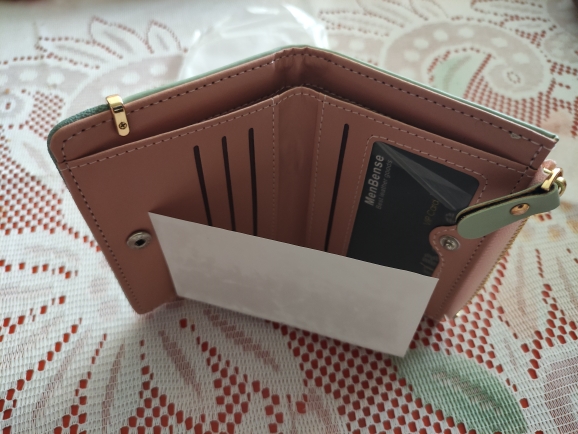 хороший кошелёк, очень понравился, красивый цвет, компактный, тонкий и при этом все умещается, даже есть кармашек для мелочи, доставка меньше месяца
