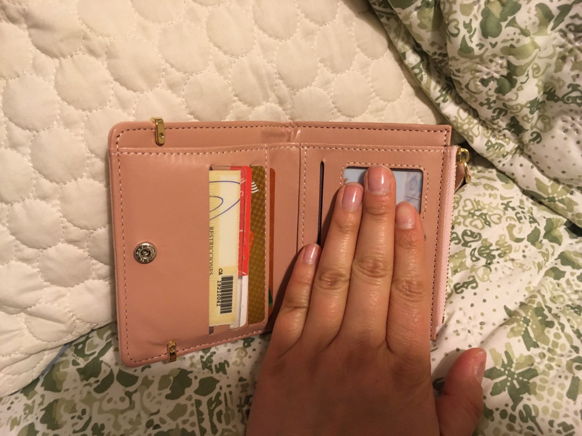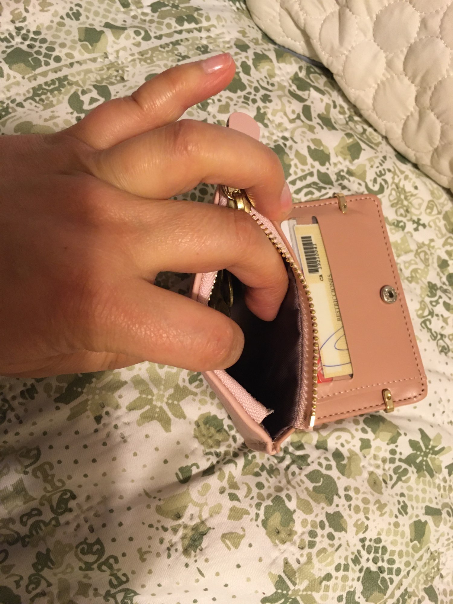 It arrived on time and it’s a nice small wallet for traveling!