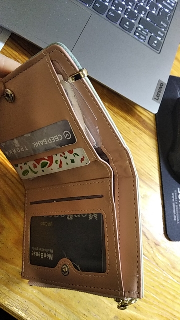 Отличный компактный кошелёк, есть все необходимые отделы (под мелочь, купюры и карточки).