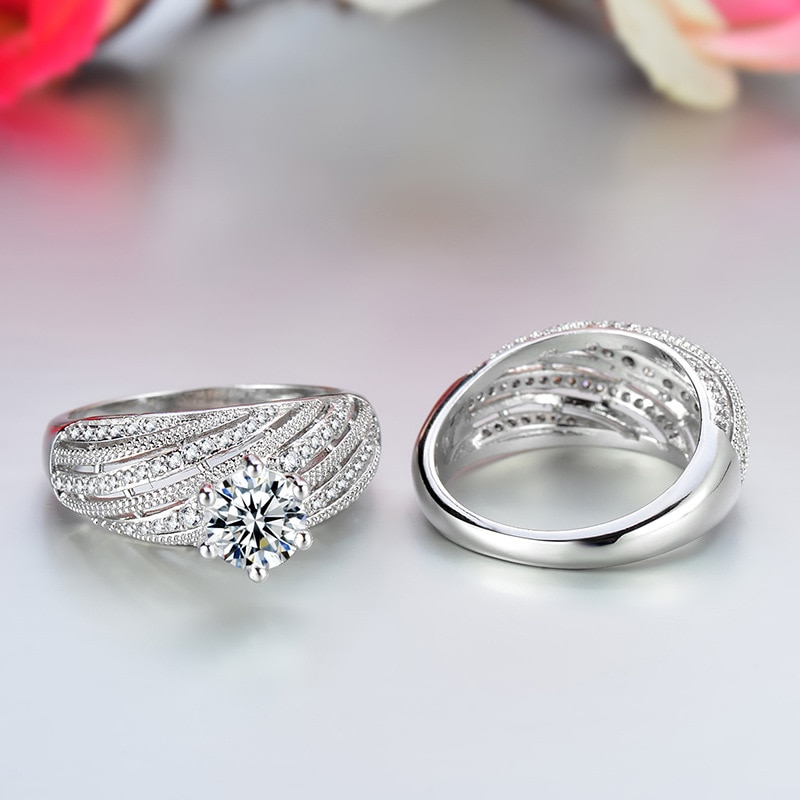 42 reviews for Silver Color Luxury Brand Wedding Ring Set