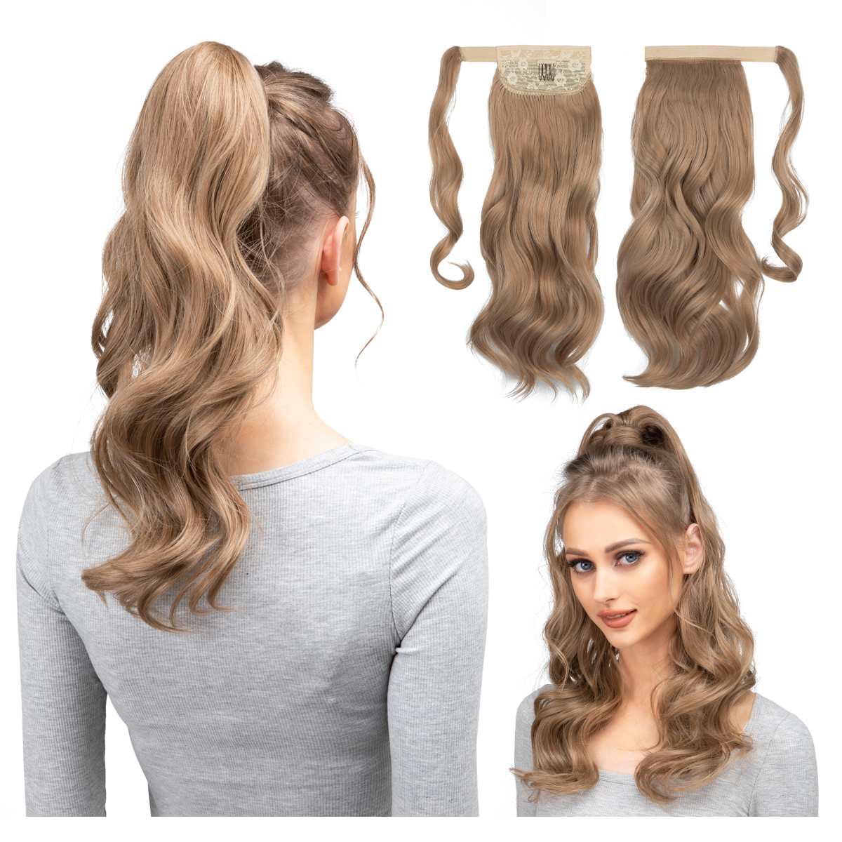 10 reviews for Synthetic Long Wavy Ponytail Hair Extension Blonde Hairpiece Wrap Around Pigtail